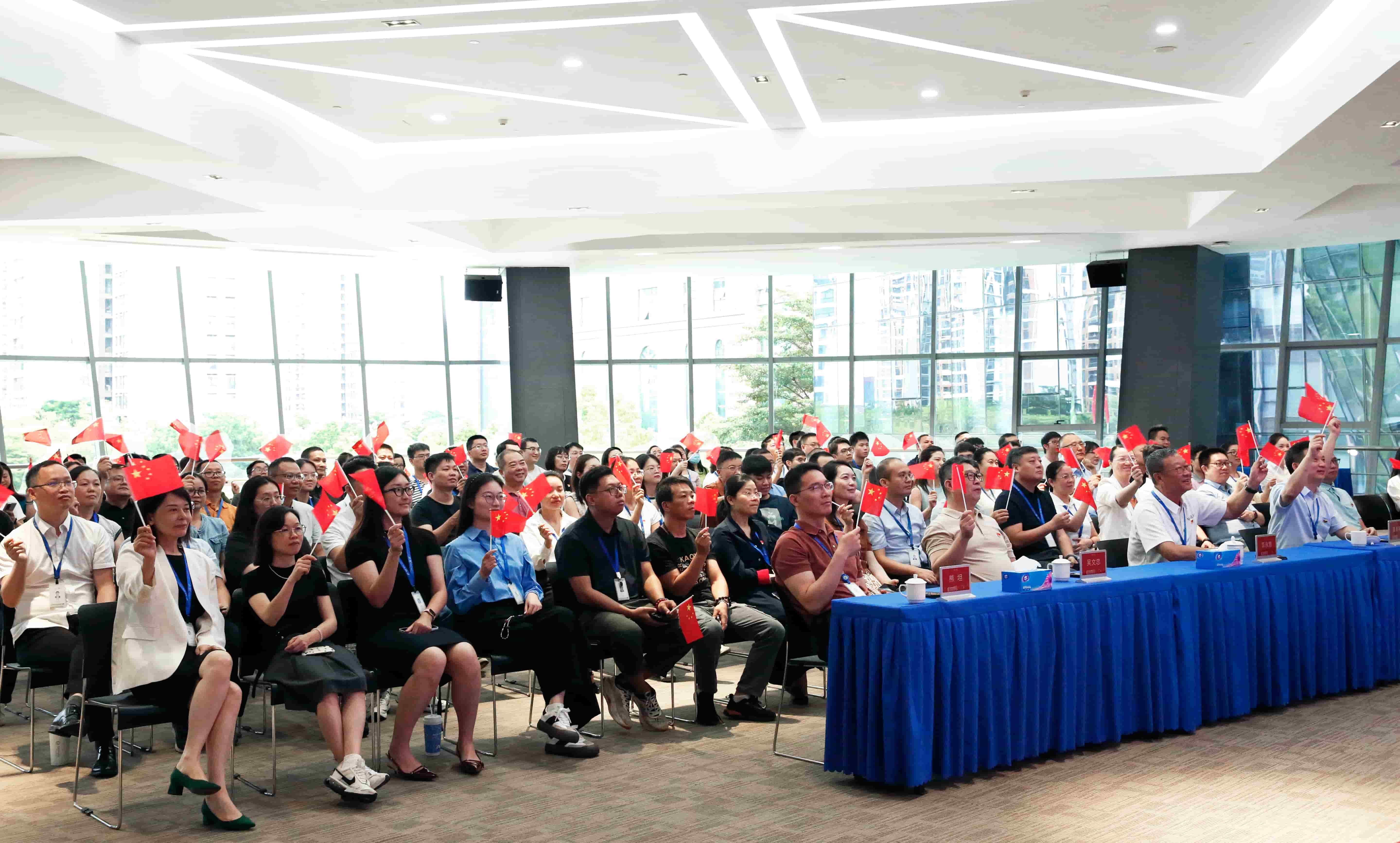 公司多功能會(huì)議室氣氛莊重而熱烈,背景屏幕上“銘記歷史、緬懷先烈、珍愛(ài)和平、開(kāi)創(chuàng)未來(lái)”的標(biāo)語(yǔ)格外醒目。上午9時(shí)整,莊嚴(yán)的國(guó)歌聲響起,全體員工自發(fā)肅立,澎湃的愛(ài)國(guó)激情在每個(gè)人心中涌動(dòng)。