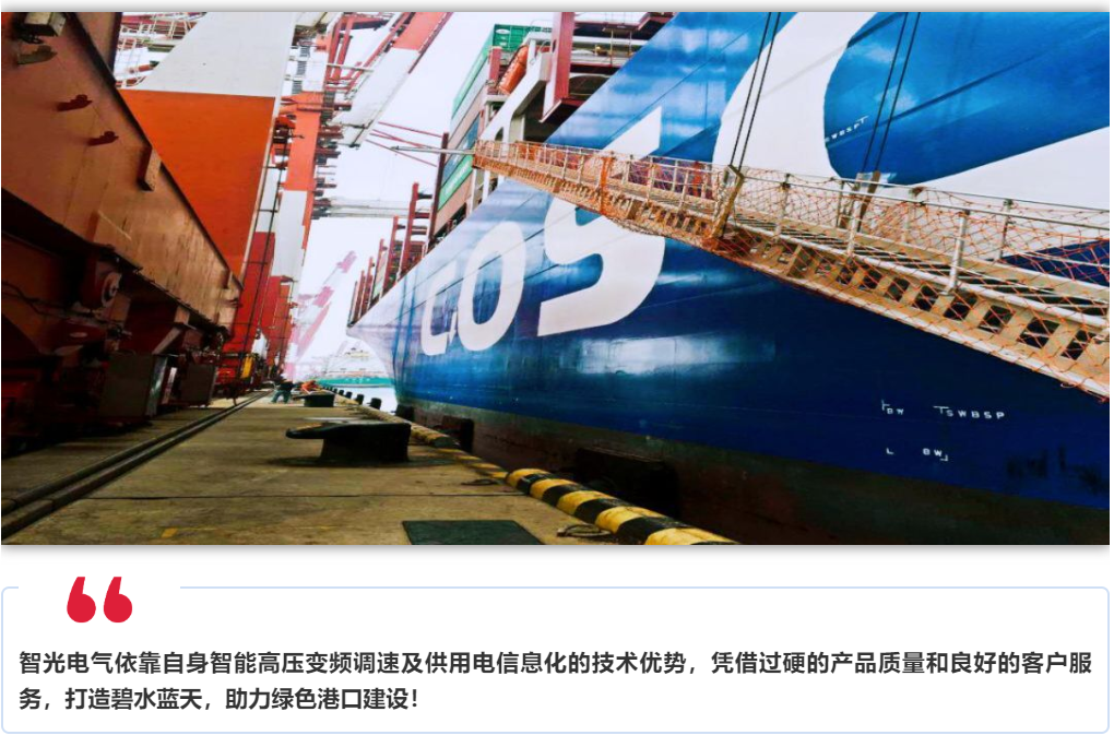 智光負(fù)責(zé)項(xiàng)目的供電岸電,其中岸電系統(tǒng)容量為5MVA,輸入電壓10kV,輸出0-6.6 kV,頻率為60Hz,岸電系統(tǒng)的投入使用將極大提升港口的船舶供電能力,通過(guò)使用岸電設(shè)備供電,徹底消除了船舶自身供電尾氣對(duì)大氣的污染。