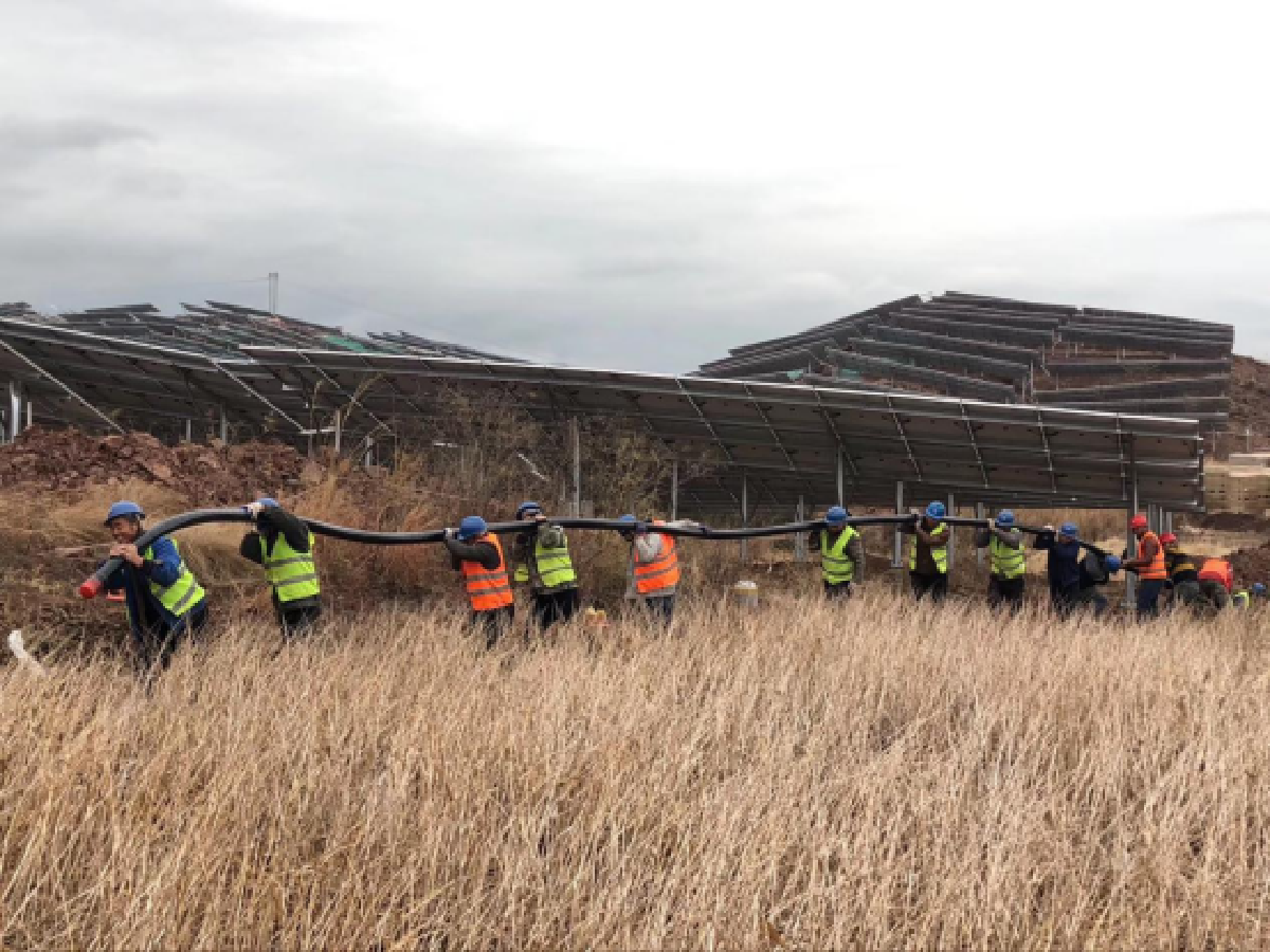 該項(xiàng)目工程量大,除了廣闊的光伏區(qū)外,還包括一座220千伏升壓站和1.8公里的外送線路兩項(xiàng)重大配套工程,并且有建設(shè)周期短的要求。智光用電投資接到中標(biāo)通知書后,急業(yè)主所急,迅速動(dòng)員、嚴(yán)密部署,成立了以智光用電投資主要領(lǐng)導(dǎo)親自掛帥的項(xiàng)目協(xié)調(diào)小組和現(xiàn)場指揮部等組織機(jī)構(gòu),充分調(diào)動(dòng)公司內(nèi)外部力量,集全員之力,分工合作,全面打通了從土地租賃、青苗賠償,設(shè)計(jì)、采購、監(jiān)造,現(xiàn)場安裝、質(zhì)安管理和外部協(xié)調(diào)等各項(xiàng)工作環(huán)節(jié)。