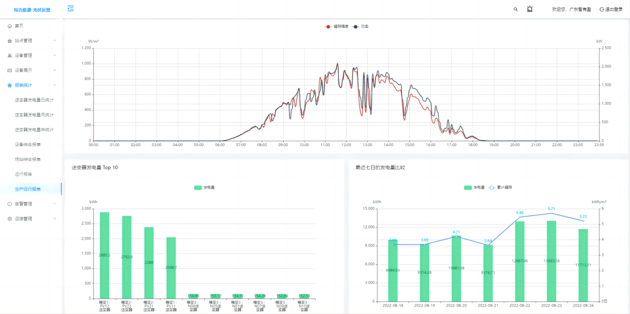 報表分析提供逆變器年、月、日發(fā)電量報表統(tǒng)計查詢導(dǎo)出功能,逆變器、場站綜合報表統(tǒng)計查詢導(dǎo)出功能,場站生產(chǎn)運行報表統(tǒng)計查詢導(dǎo)出功能。